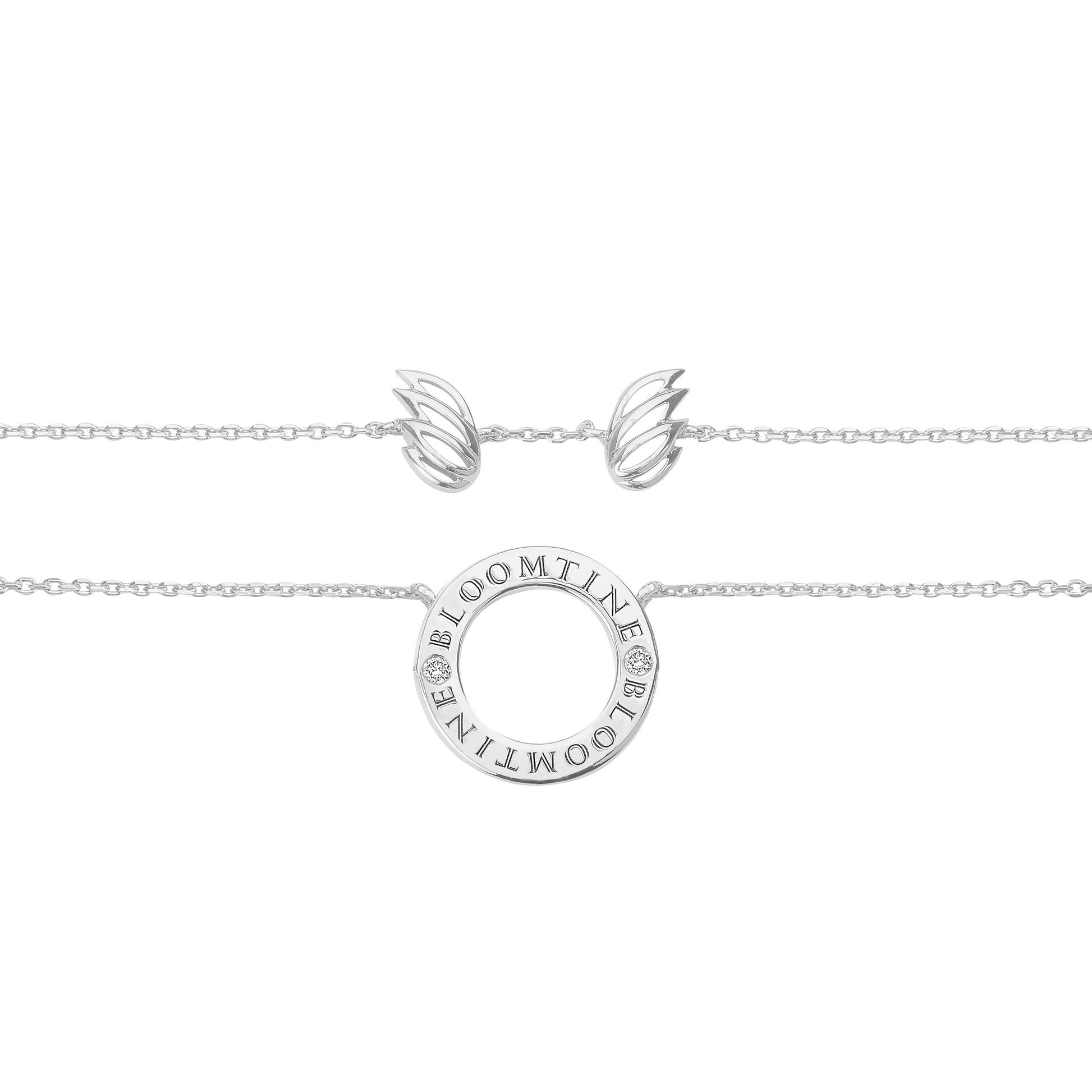 BLOOMTINE Crie a joia perfeita para oferecer. Comprimento da corrente: 15,5 cm. Diâmetro do halo: 15 mm. 2 diamantes de laboratório redondos de 1,75 mm. © Design com direitos de autor reservados.